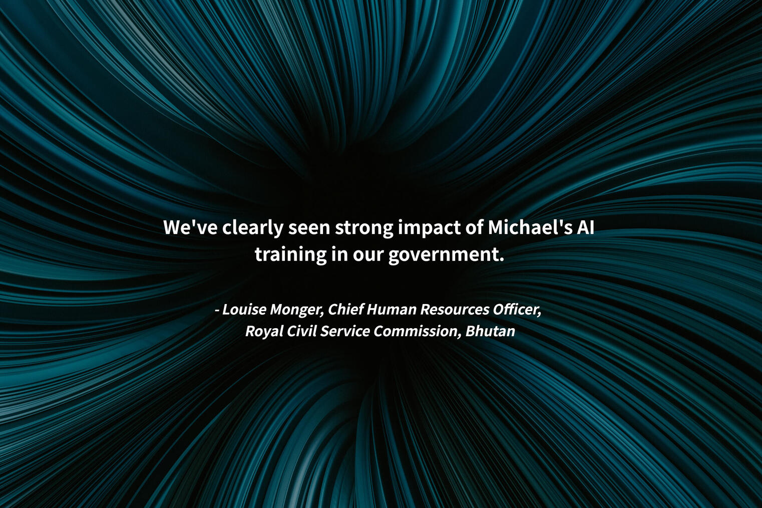 My AI work spans government, corporate, and international arenas, including AI projects with the Government of Bhutan, the cities of Lehi, Orem, and Clearfield, Women Leading Government, Kiln, Ghostrades, and a range of businesses across the Wasatch Front.
